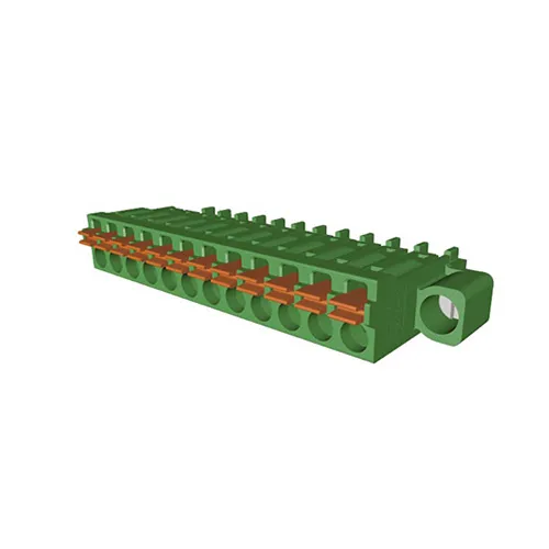 产品描述:矮型弹簧式插头,插拔式端子台-插头LKPGF381,间距3.81mm,位数02p~24p,绿端子,插拔方向平行于导线轴方向,带固定法兰